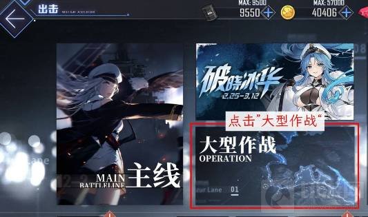 2.在打开的出击页面后,点击大型作战项,进入大型作战页面。