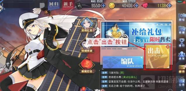 1.先打开碧蓝航线APP,进入主页面,点击出击按钮,进入出击页面。