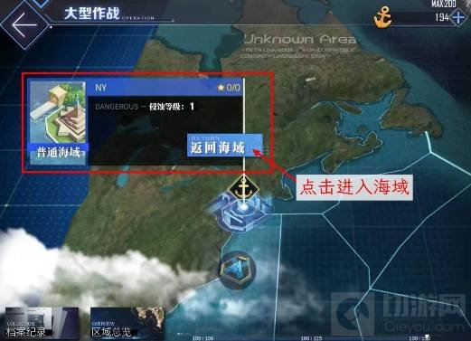3.点击相应海域进入作战海域,如果是初次作战需要选择舰队。
