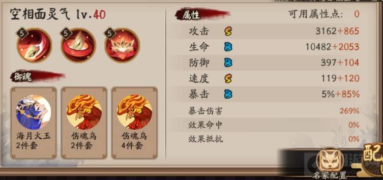 2.第二套斗技打输出用的,中速 速攻爆伤伤魂鸟/恶楼/或是团队御魂,这个御魂套装在打浪川阵容上,后期完全不怂,带恶楼的话,80%减伤浪川根本冲不动,因为有两条命,也不怕腹肌放蛇。