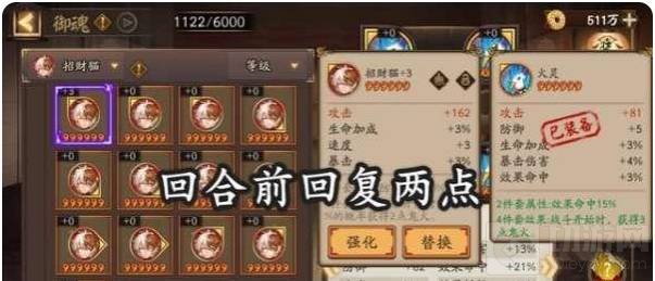 2,招财猫这个御魂在阴阳师中的用处异常广泛,基本上任何一个式神都可以使用该御魂,玩家们常流传一句话就是万物皆可招财,足以见得这个御魂用处的广泛。该御魂的优势就是在每次回合开始的时候会有一半的概率获得到两点的鬼火,但是运气差的话也会存在一局都没有触发的可能性,该御魂的副属性是增加防御力。