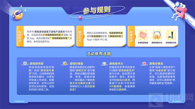 2022夏季创作营活动面向全平台,征集网易各大游戏产品的内容作品,创作者将发布在社媒平台的作品链接提交到“网易创作匠”平台即可参与活动。