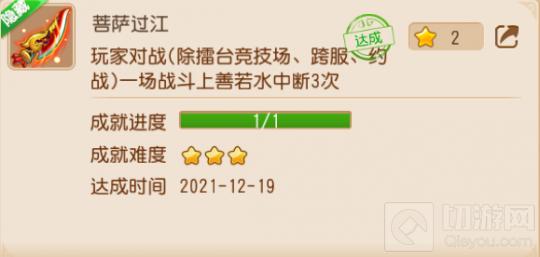 成就内容:玩家对战(除擂台竞技场、跨服、约战)一场战斗上善若水中断3次