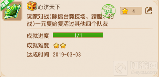 成就内容:玩家对战(除擂台竞技场、跨服、约战)一元复始复活过其他四个队友