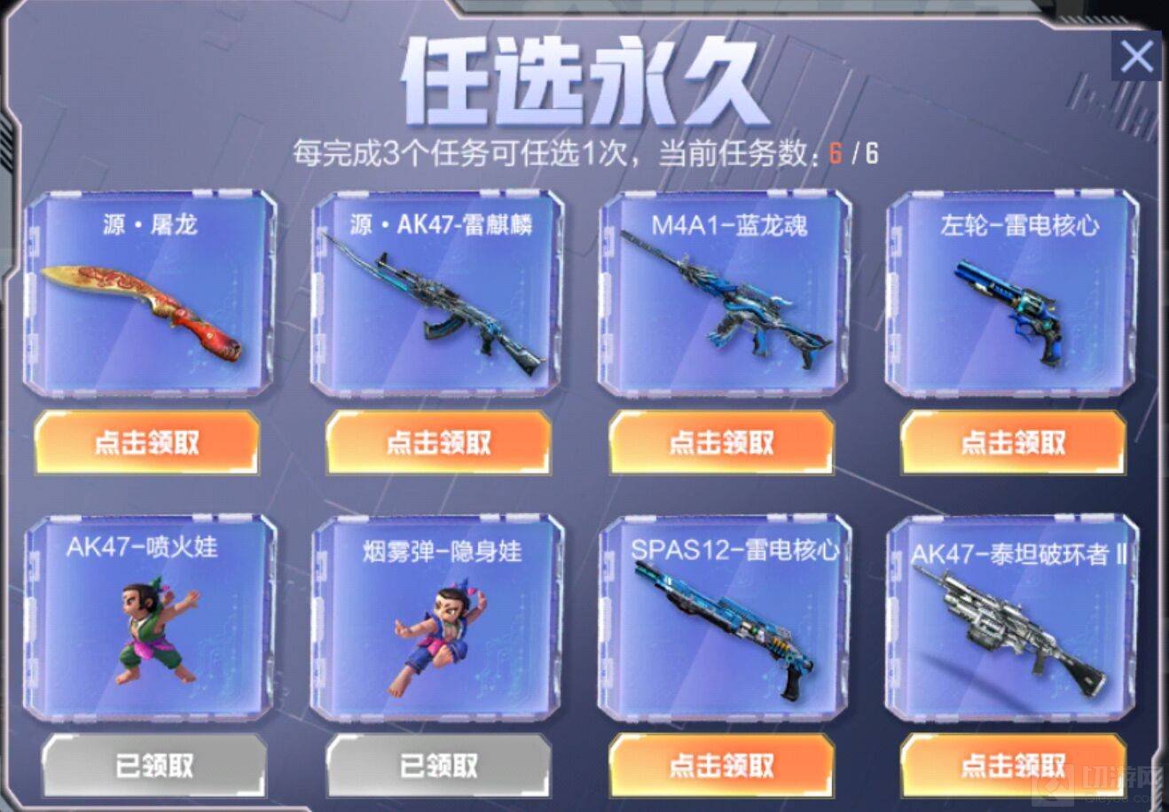 2、每完成活动的3个任务就可以在奖池中选择一把武器,里面就有雷电核心喷子可以选择。