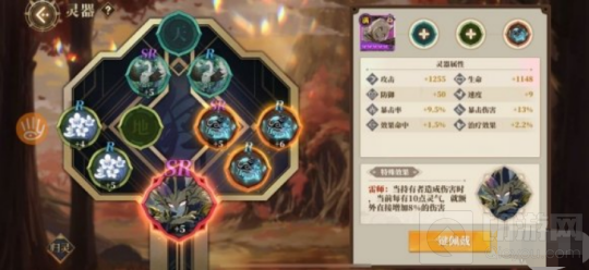 其次通关思路是用天狐+长蛇的灵器触发回蓝,再用长蛇的写轮眼复制蓝条,满蓝条情况下,带着雷师的天狗和共工输出当然爆炸。