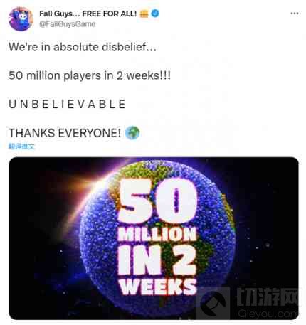 自上个月《糖豆人:终极淘汰赛》免费以来,玩家的整体数量出现了爆炸式增长。这都得益于其休闲闯关玩法的低门槛,以及优秀的社交性。短短数周,这款休闲游戏的玩家数量就突破了5000万。