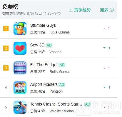 《糖豆人:终极淘汰赛》是否也有开发手游的打算还不得而知,但《Stumble Guys》手游现已抢先一步登顶了美国、英国免费榜的榜首位置。如果能培养用户习惯,那么即使未来的某一天《糖豆人:终极淘汰赛》手游真会到来,恐怕也不是《Stumble Guys》手游的对手。