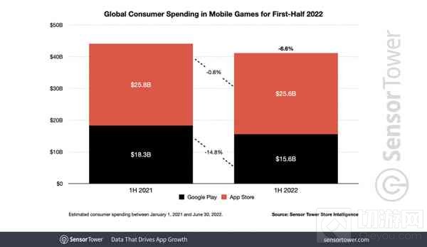 今天手游数据收集公司 Sensor Tower 发布了一份新报告,称 2022 年上半年移动游戏消费者支出达到 412 亿美元。 与 2021 年同期相比,该数字同比下降 6.6%。