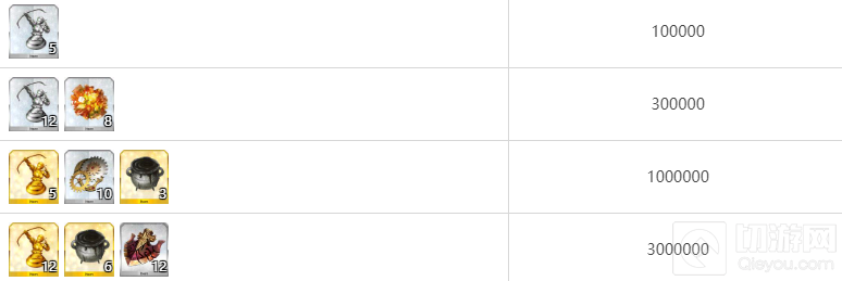 2 → 3:弓阶金像*5、无间齿轮*10、黑兽脂*3、QP100万