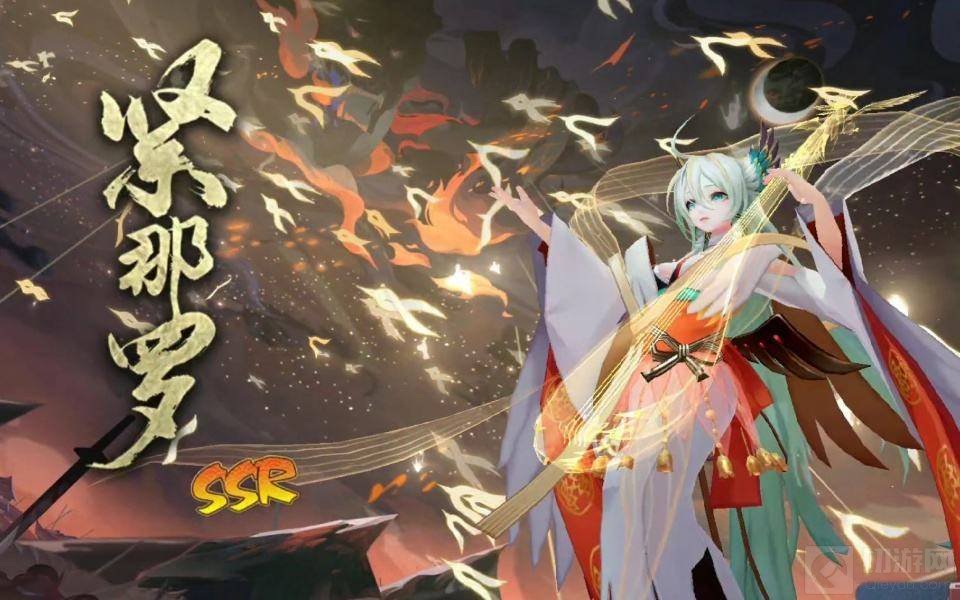 SSR式神角色,远离京都的严岛,曾被长夜笼罩多年,潜伏在黑暗中的妖怪与人类为敌,使得生灵几近灭绝。在绝望之中,紧那罗手执琵琶“玄象”,用音乐引导着人们开拓希望的道路,最后,她改写那古老的历法,成为照耀严岛、守护人类的光明。