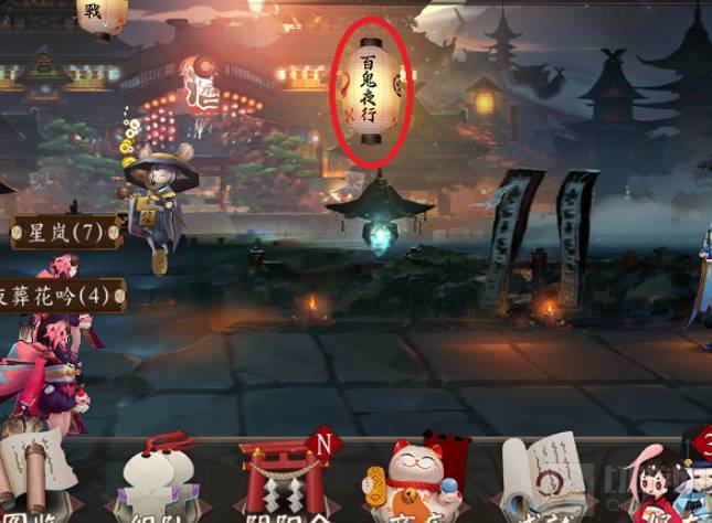 2. 在“町中”中,可以看到标有“百鬼夜行”的灯笼,然后点击进入即可进入百鬼夜行页面。