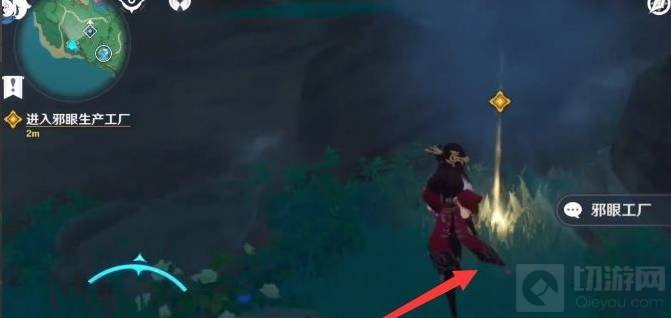 3.最后靠近发光的位置就是邪眼工厂的入口了,点击进入就可以。