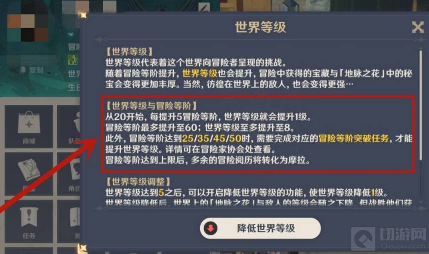 1、在游戏内超过20级以后,每提升5冒险等阶,并完成冒险等阶任务就能提升世界等级。