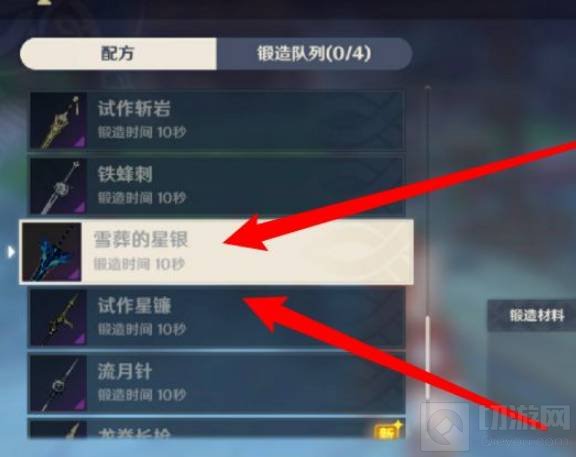 4.接着在锻造配方里面选择雪葬的星银并点击委托锻造即可获得星银大剑。