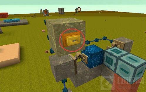 注意:电石块放置的时候不要和滑动方块贴着,因为滑动方块通电后会吸引标记器,导致轴承上移,在这里先不要让轴承上升。