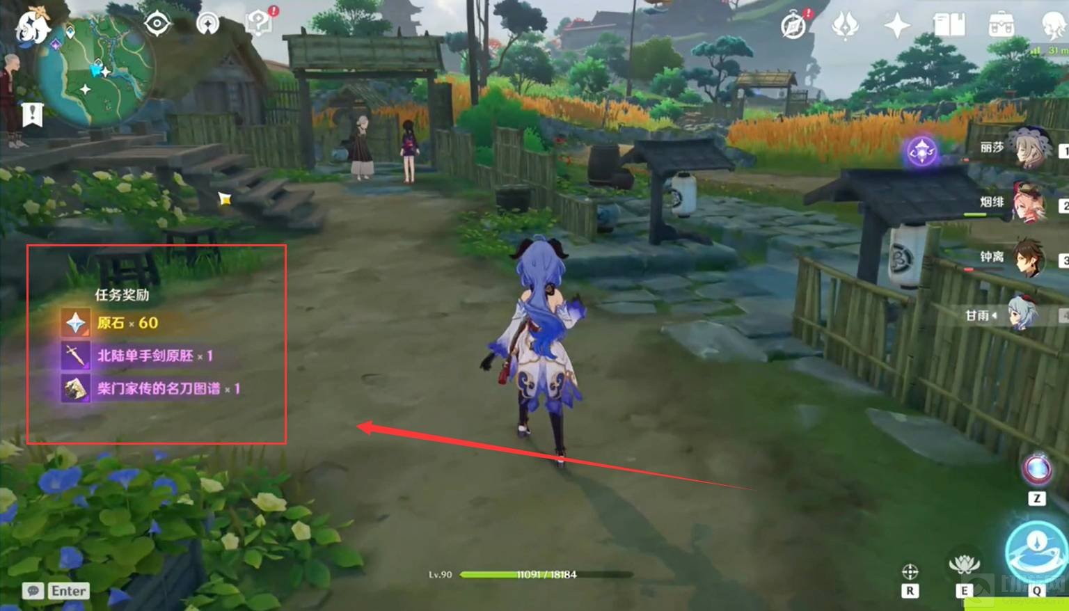 6.对话完成后,根据任务提示与柴门二郎一同返回柑田村。