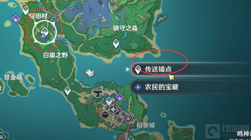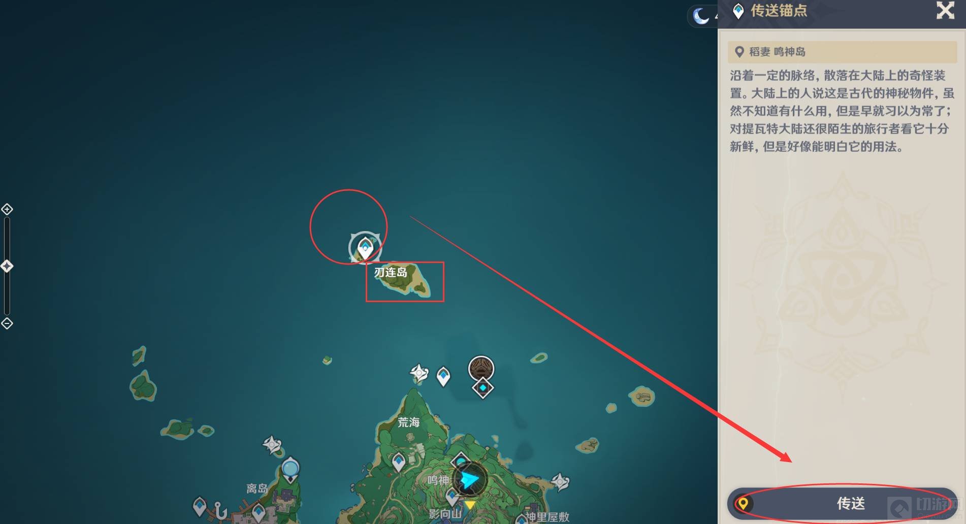 1.登录并进入游戏后,打开地图,来到稻妻区域的刀刃岛,点击传送。