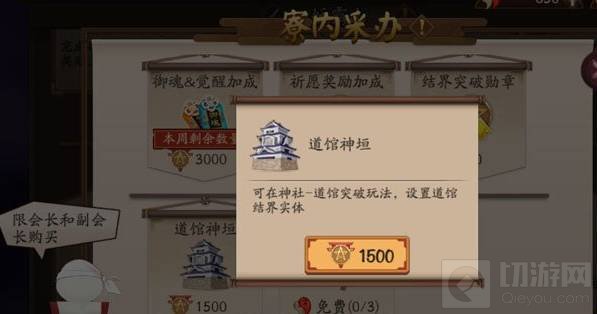 1.会长或副会长可以消耗寮勋章购买“道馆神垣”创建道馆,在神社→寮内采办消耗1500勋章获得。