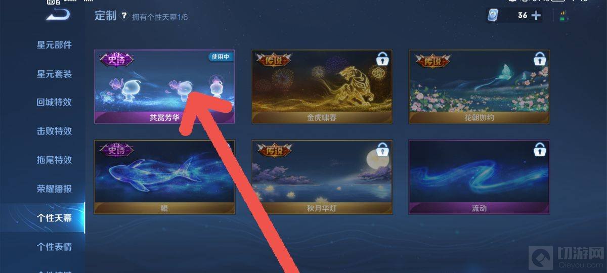 5、进入游戏的等待界面时,点击左侧星星的图标即可使用更换好的天幕。