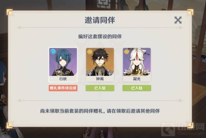 4. 放置套装后,可以领取赠礼的角色是可以邀请的。