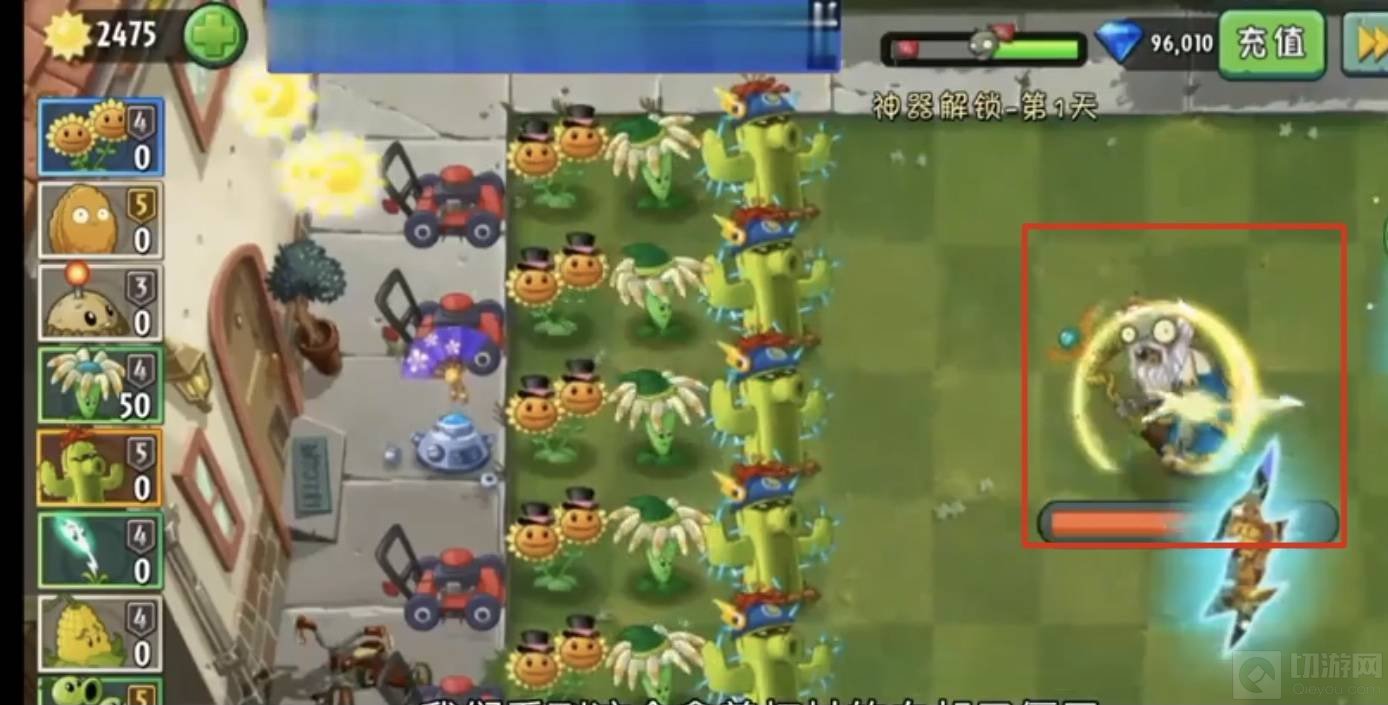 3.点击解锁后,在打败僵尸的过程中会看到一个白胡子的僵尸,打败他就可以获得权杖。