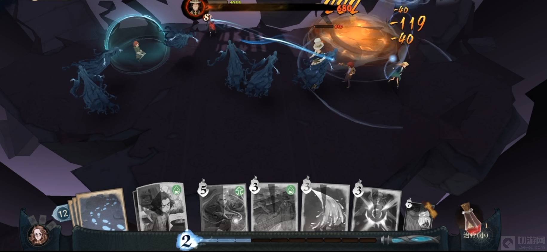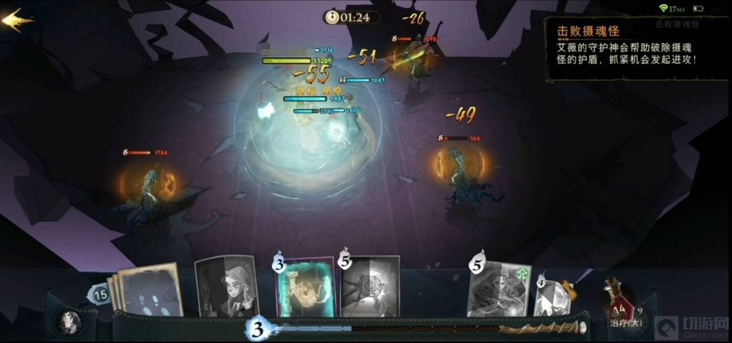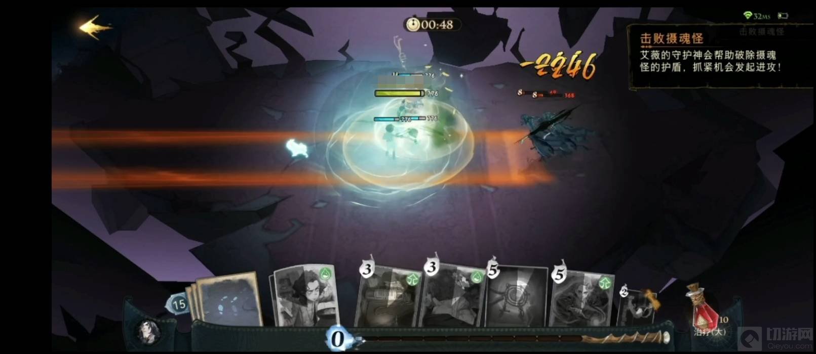 8:可以聚到一起攻击没有护盾的摄魂怪,同时注意回血和加防护,重复操作即可取得胜利。