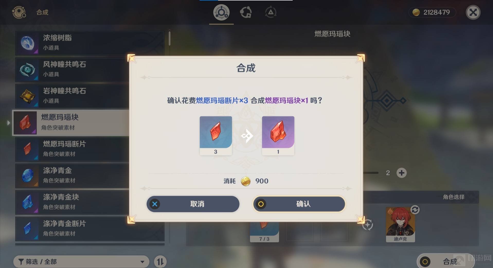 5、需要3个燃愿玛瑙断片,点击确认。