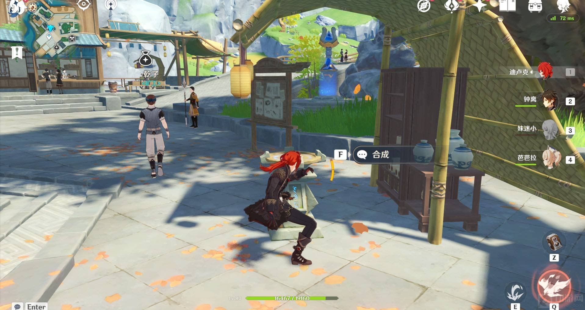 2、进入游戏后打开地图我们进入璃月港或者蒙德,找到合成台。