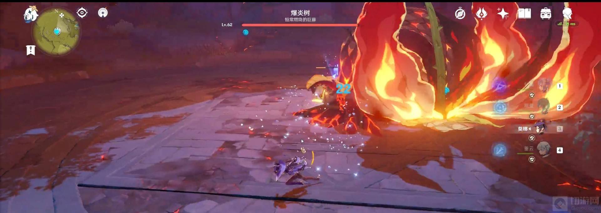 4、接着去攻击爆炎树或北风狼,注意:打爆炎树的时候,不要用火属性角色挑战,因为爆炎树拥有70%的火焰抗性,30%的物理抗性,北风狼则对冰属性和风属性有免疫,在队伍阵容搭配上要注意。