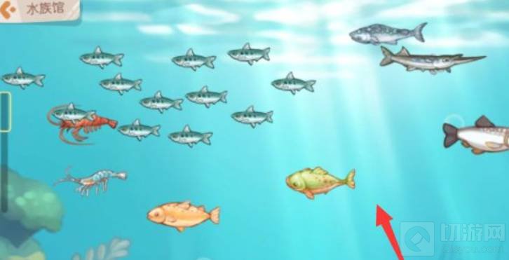 2. 点击边上的建筑,就可以下沉到水族馆里了,然后大家钓的鱼可以直接放入水族馆就可以了,直接将鱼从鱼仓拖到水面就可以了。