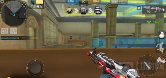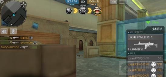 此外,大鱼缸边的柱子也是不错的蹲守点,这个点有两种打法,一种是守株待兔,玩家可以先透过玻璃墙观察敌人的动态,要是发现有敌人向这边走来,马上隐蔽在柱子后面,等敌人接近过后跳出去打他个措手不及。但如果己方高台有狙击手的话这个方法基本就拿不到人头了,因为敌人还没靠近就被狙杀了。另外一种就是先通过玻璃墙观察好要从这一侧出复活点的敌人,走两步以货箱作掩体蹲守,然后看到敌人的大头出现就打吧。在这个点位蹲守很容易被对面高台的狙击手狙杀,所以要提高警惕,看见狙击手上了高台就立马隐蔽或者撤退。在造成击杀,头部变大后则可以选择进入外侧的下坡,或者转变策略,移动射击。