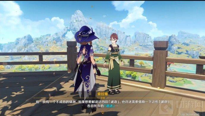 当找完4个圆盘,就会让你回到望舒客栈找到索拉雅进行下一个任务:
