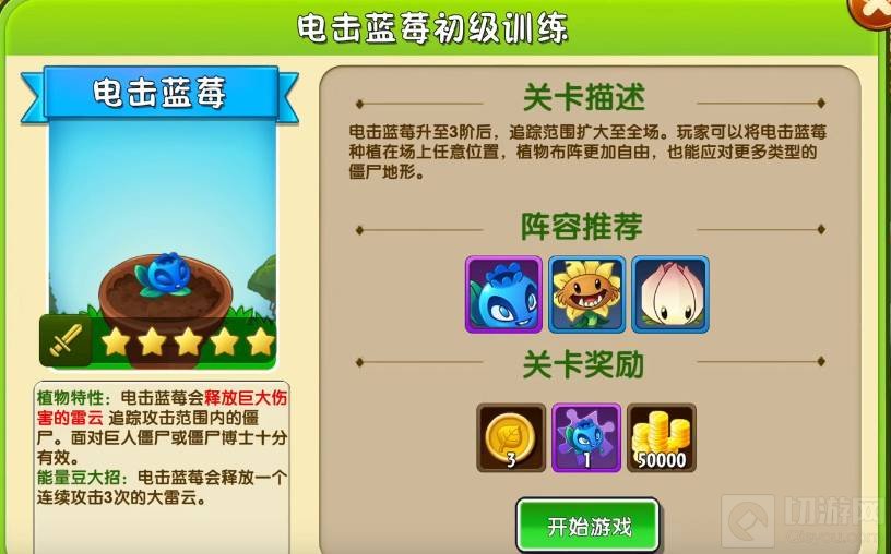 1、这关会给是三个植物,分别是电击蓝莓、原始向日葵以及能量花,其中蓝莓和向日葵是三阶的。