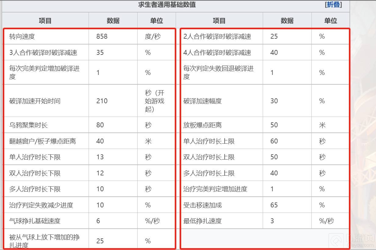 三、求生者通用基础数值