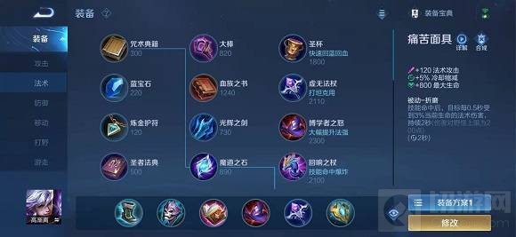 对面以持续伤害为主,可以全输出出装。出装为秘法之靴 噬神之书 痛苦面具 日暮之流 博学者之怒 虚无法杖。