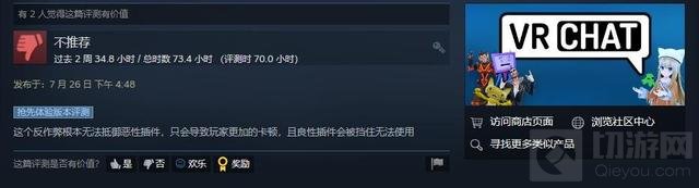 对于官方的这一做法,《VRChat》的玩家给出了强烈回应:7月25日公告一出Steam就收到了2811条差评,7月26日达到了6709条,最近测评变为“多半差评”,14491条评论中只有23%是好评。