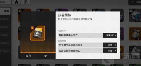 1、技能枢核是用于提升人形角色技能等级的专精材料,游戏中主要可以通过封装中心胜场、令牌交易商店购买以及常驻物资商店兑换获得,此外挑战关卡也有一定几率会掉落;
