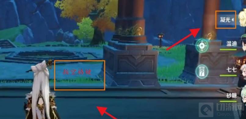 4、接着使用队伍中的“凝光”,按“空格键”。