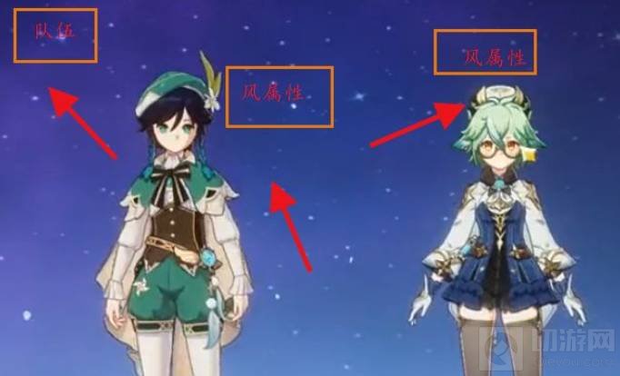 3、再打开“队伍”,搭配两个“风属性”角色。