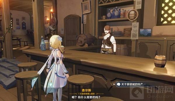 4、到酒馆的位置找酒保查尔斯对话,帮它去看一下调酒的饮料怎么没到,调查后进行打怪,回来回复酒保就可以获得天使的馈赠特色饮料;