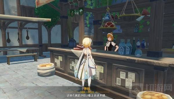 2、先去猎鹿人酒馆找丽莎进行对话,给她满足沙拉可以获得猎鹿人酒馆的特产;