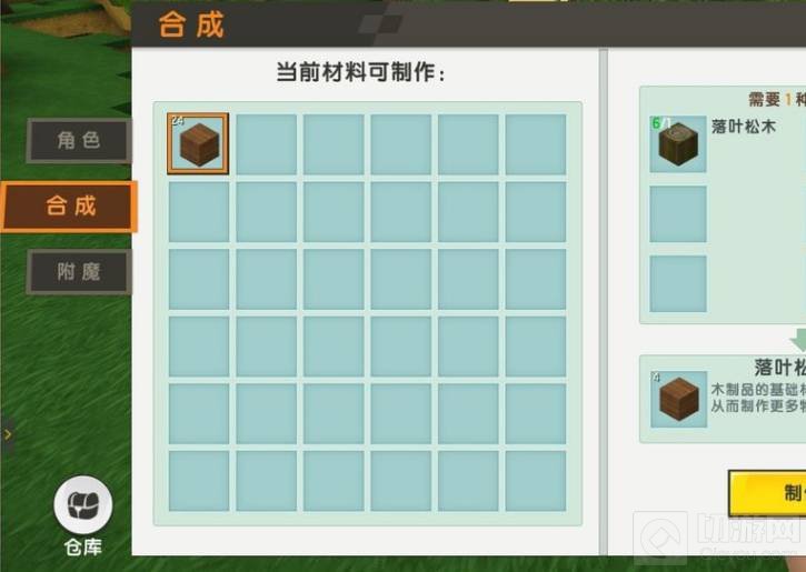 6.然后点击合成,在此点击落叶松木,将其放在需要材料中,然后点击制作落叶松木板,然后点击落叶松木板,制作工具箱。