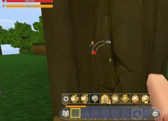 2.收集方法很简单,人物走到树木前面,对准树,用鼠标点击不要松手,等到100%的时候,树木会自动裂开,变成木材。