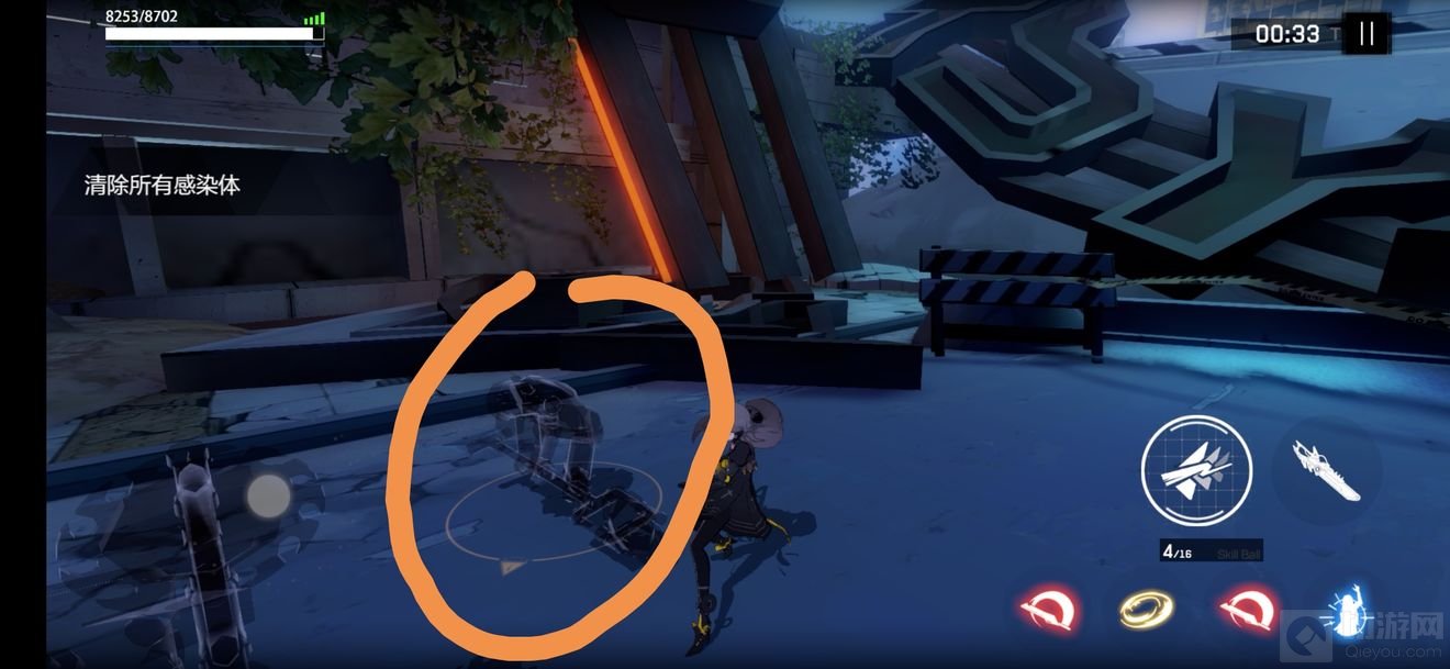 剩下1个屠夫,赶在它杀死市民前用红球配合普攻连击摧毁。