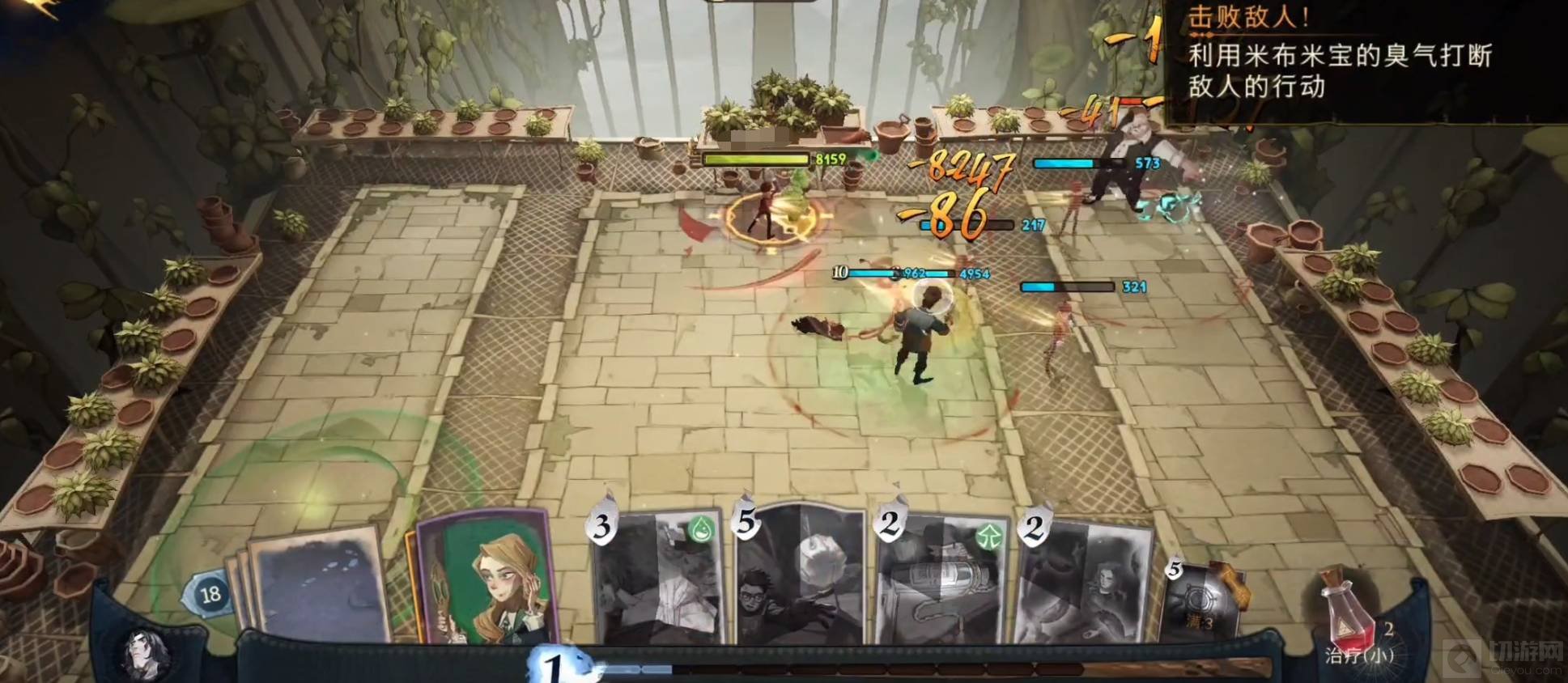 3:将普朗克赶到角落,再释放金色飞贼、妖怪书、时间转换器召唤出分身、肿胀药水等卡牌打出高伤害值,反复操作消耗他的血量,最终击败他。