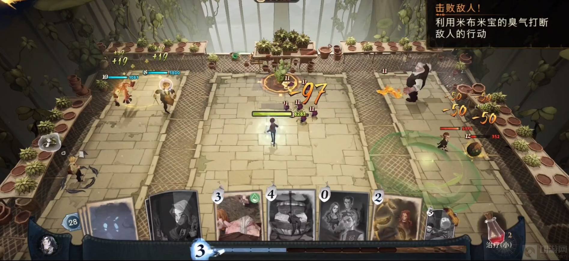 1:开局利用米布米宝的臭气攻击小怪,接着再释放凯文、凤凰、妖怪书等卡牌攻击他们,并且注意走位躲避小蜘蛛。