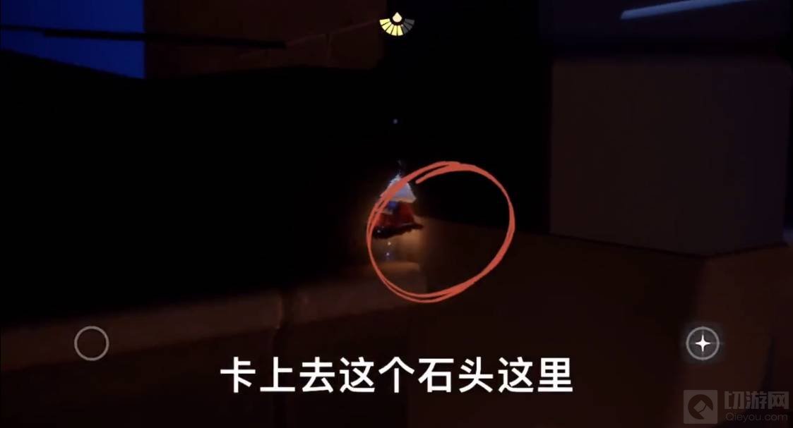 5、这时候就能够站在缝隙里了,然后向右走,把自己卡在右边的石头上。