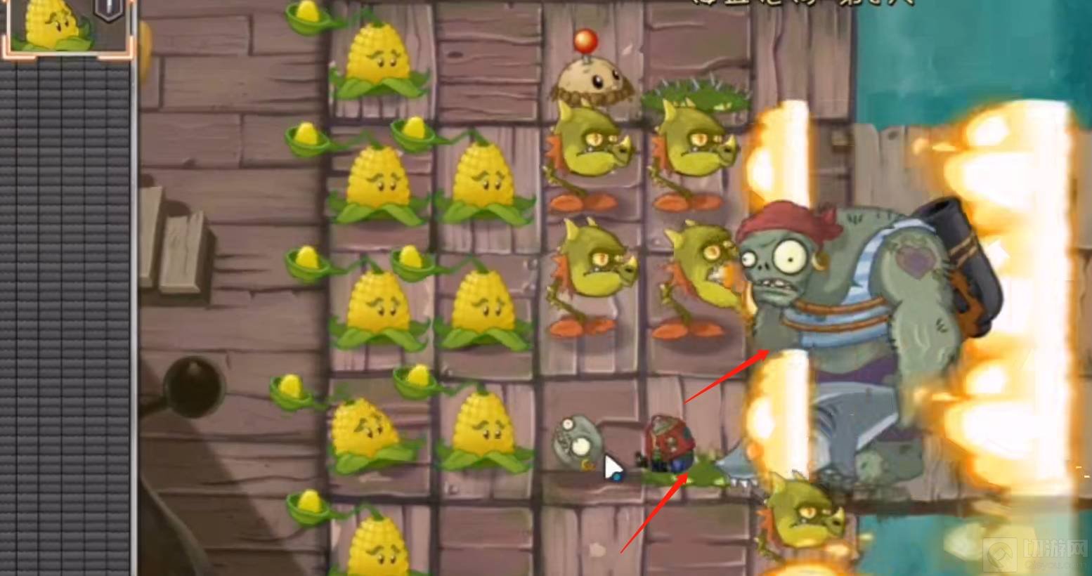 接着还可以在前面放置地雷进行攻击僵尸,结合玉米投手不断地攻击。