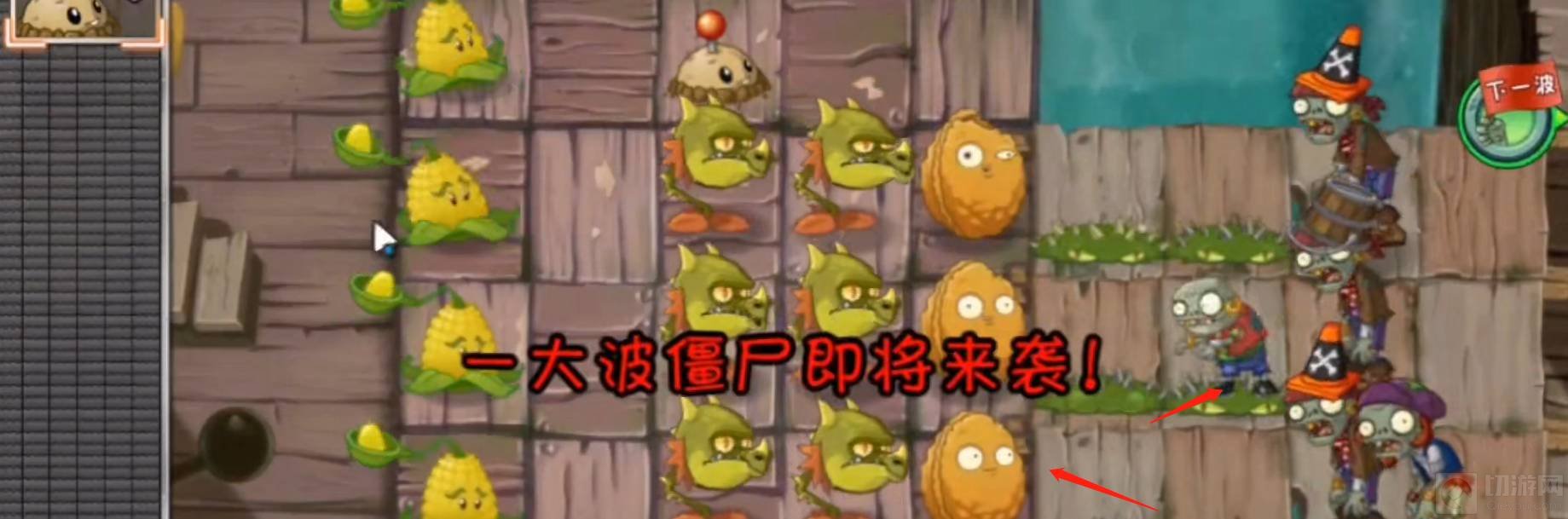 在倒数第三四排的位置布置完食人花才可以大面积进行攻击。